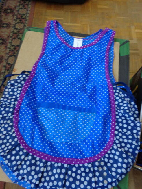 fartuszek dla dziecka nowy do 6-7 lat kolorowy długi 50 cm. wiązany z boku z obu stron kieszonka z przodu , wysyłka