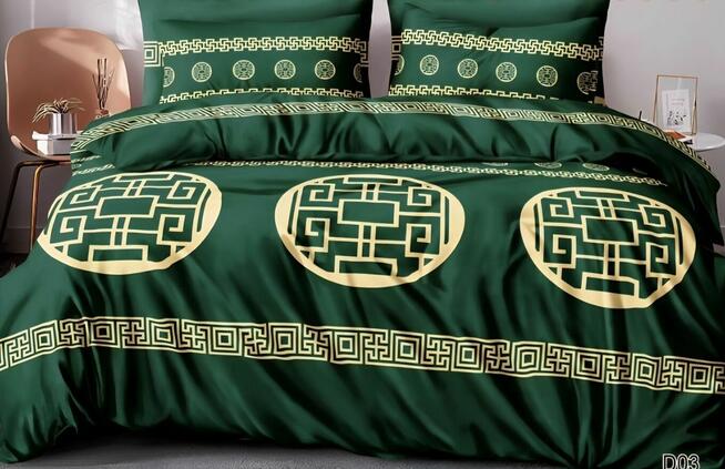 Nowa pościel o wymiarach 160x200 cm z prześcieradłem firmy Milano. Zielona pościel ozdobiona jest eleganckim złotym ...