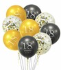 Zestaw balonów na 18. urodziny w kolorach złotym i czarnym. Balony z nadrukiem cyfry 18 i konfetti. Idealne na dekorację ...