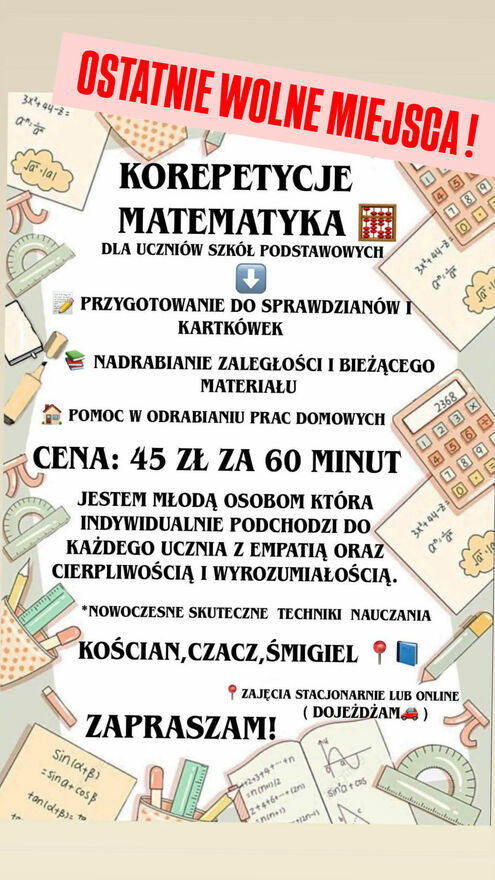 Korepetycje MatematykaDla uczniów szkół podstawowych.