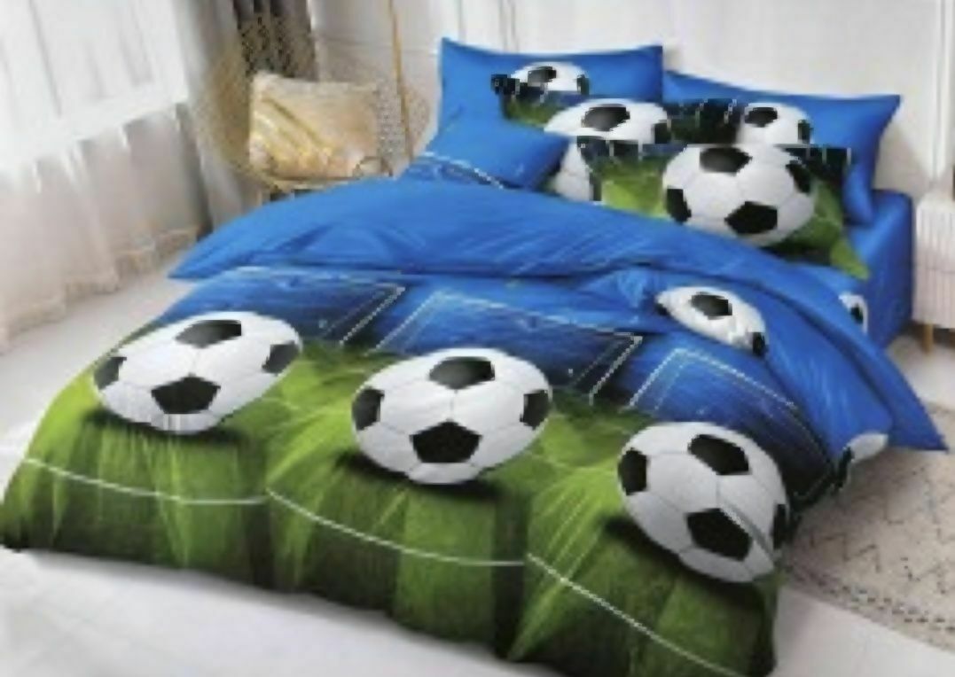 Nowa pościel piłkarska w rozmiarze 160x200 cm. Pościel wykonana z satyny bawełnianej z nadrukiem piłki nożneǰ na niebieskim tle. Material nie jest śliski i nie ziębi. Idealna do pokoju dziecka lub nastolatka, który interesuje się piłką nożną.Komplet zawiera