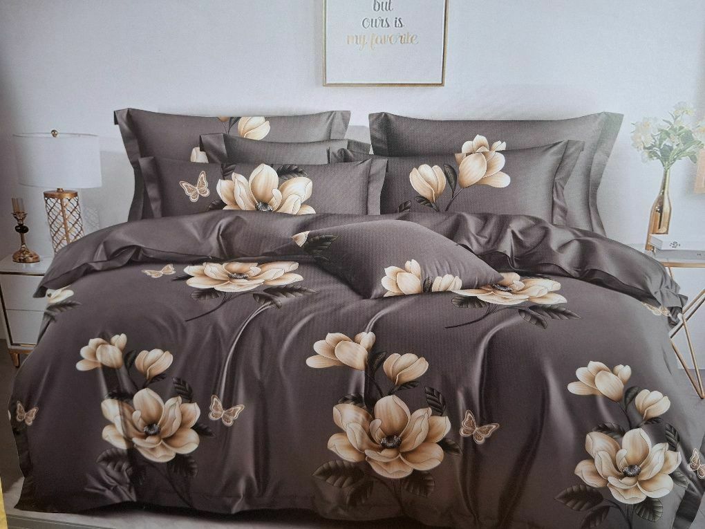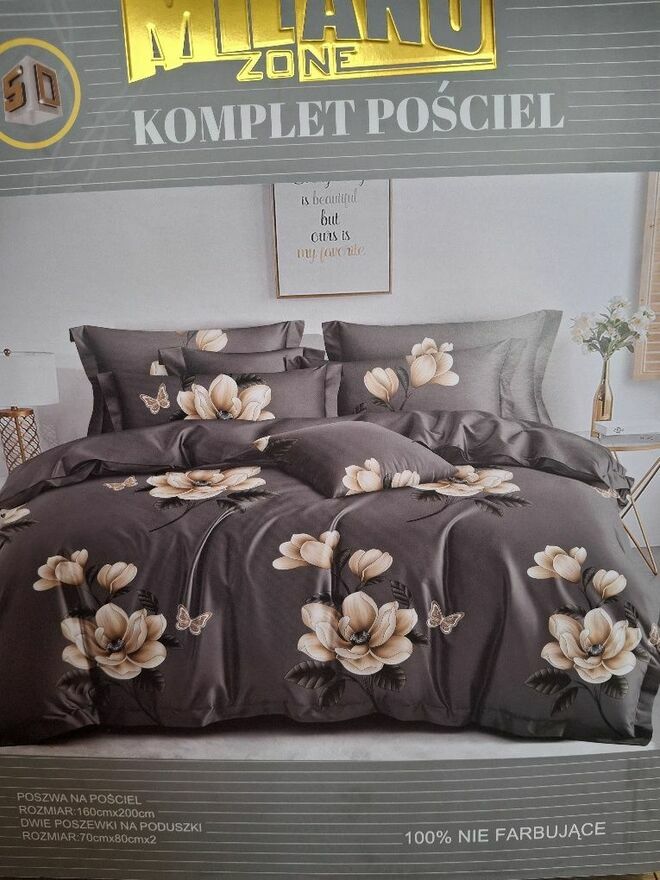 Witam oferuję nowe pościele 160x200 wzór jak na zdjęciu. Kolor szary w kwiaty.Materiał satyna bawełniana przyjemna w dotyku nie ziębi i nie jest śliska.